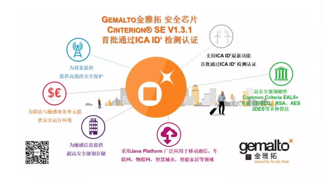 金雅拓一直致力于為物聯(lián)網(wǎng)安全保駕護航,并作為ICA(IoT 合作伙伴計劃)聯(lián)盟1理事成員,出席本次盛會,與科技大佬們共享經(jīng)驗,共促物聯(lián)網(wǎng)的蓬勃發(fā)展。本次大會發(fā)布了首批通過ICA ID2檢測認(rèn)證2的安全芯片產(chǎn)品,金雅拓Cinterion® SE 安全芯片成為首批通過檢測認(rèn)證的高安全級別產(chǎn)品。