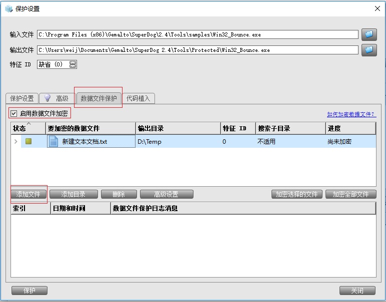某個視頻文件要加密、程序中調(diào)用的數(shù)據(jù)文件不想被看到、或者一些exe / dll以外的程序運行時需要加密狗的驗證,就可以使用數(shù)據(jù)文件功能。
