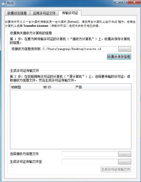 在 A 電腦上,同樣運(yùn)行RUS,選擇需要Rehost遷移的SL,“選擇接收方信息文件” 選擇 B 電腦上生成的receive.id;“生成許可證傳輸文件至” 選擇一個(gè)自定義的名字,比如為 rehost.h2h。點(diǎn)擊右下角的按鈕“生成許可證傳輸文件”即可生成rehost.h2h。將這個(gè) rehost.h2h文件發(fā)給B電腦。