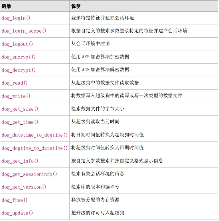 這些函數(shù)詳細(xì)使用說明,請(qǐng)通過打“超級(jí)狗工具包“,在操作手冊(cè)和教程的SuperDog Developer'sGuide.pdf文件來查閱。