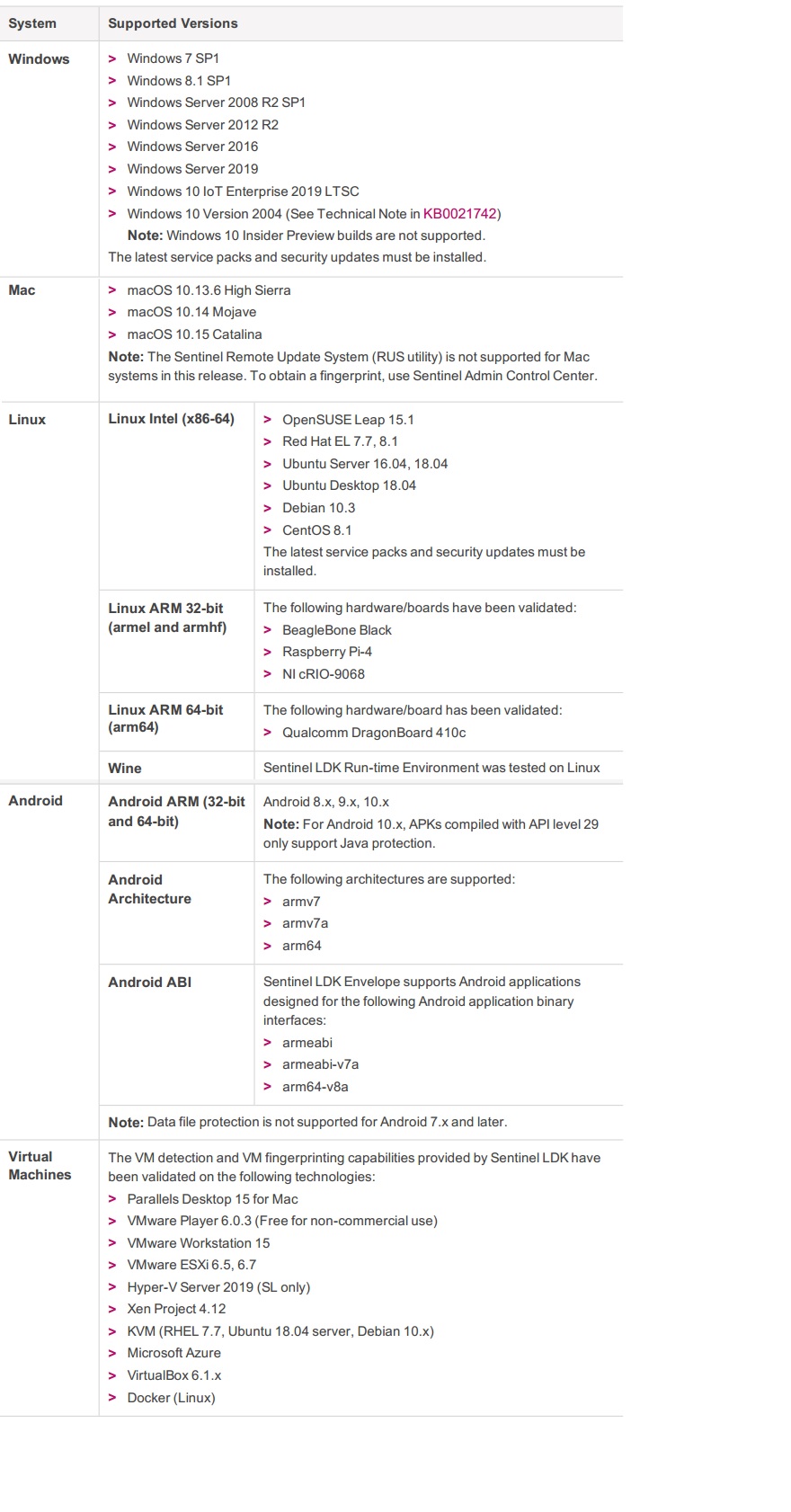 Sentinel LDK8.0支持的操作系統(tǒng)