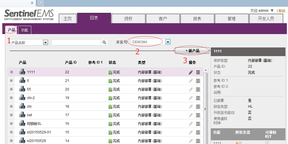 按1產(chǎn)品,2選擇開發(fā)號,3新建產(chǎn)品這樣的步驟操作。