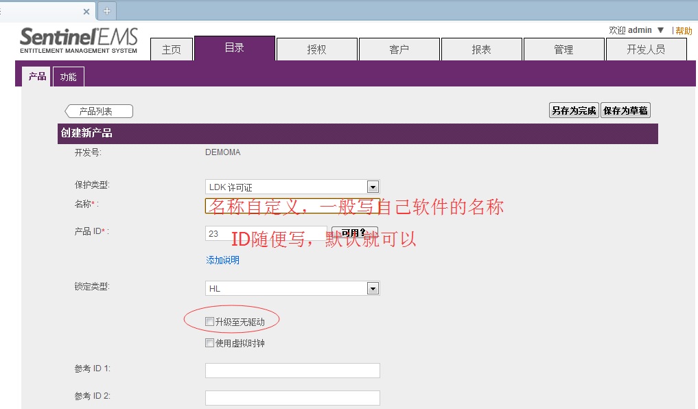 2、定義產(chǎn)品-----把這個(gè)功能ID與開發(fā)商的軟件名稱關(guān)聯(lián),包括設(shè)置時(shí)間、次數(shù)等限制;