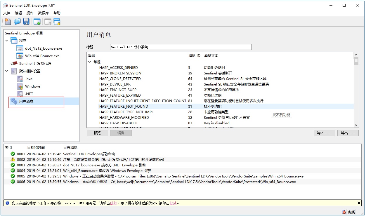 程序加密后運行時,會根據(jù)加密鎖的狀態(tài)出現(xiàn)彈窗(如沒有插加密鎖等),如果希望修改顯示的彈窗內(nèi)容,可根據(jù)顯示的消息ID數(shù)值,找到對應(yīng)的消息文件,修改后重新加密。