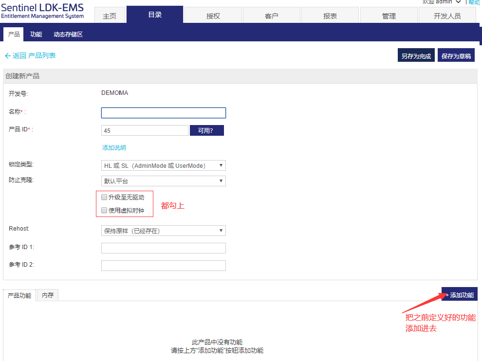 2、定義產(chǎn)品---把這個功能ID與開發(fā)商的軟件名稱關(guān)聯(lián),包括設(shè)置時間、次數(shù)等限制;